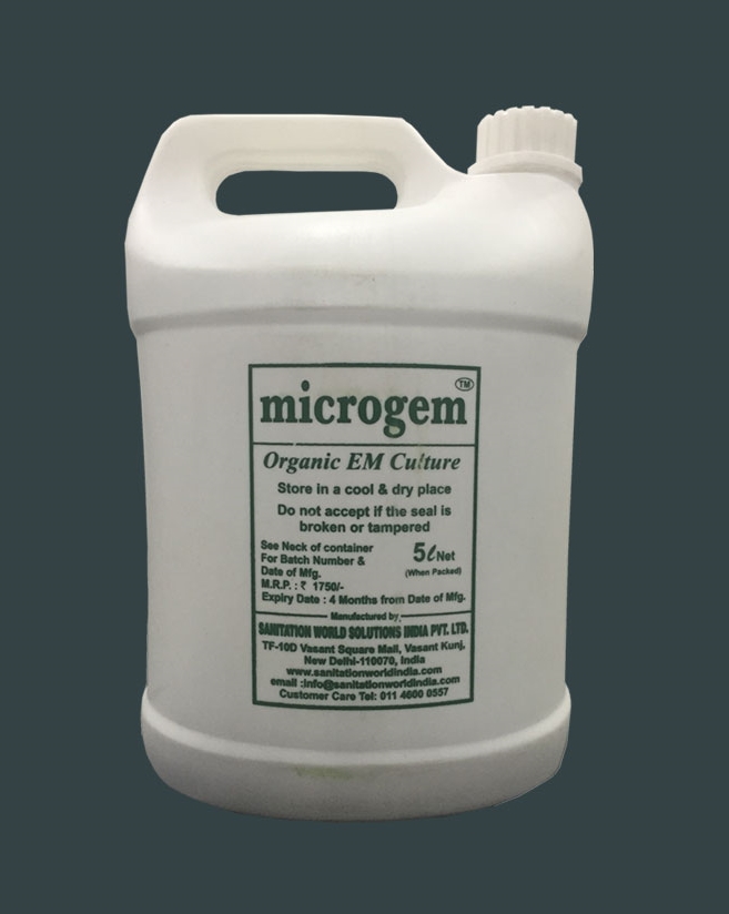 microgem™ microgem ™ is an organic bio-culture, certified by the CSIR Indian Institute of Toxicology Research, Lucknow, developed and manufactured by Sanitation World. Application of microgem ™ promotes a safe and hygienic environment in surroundings that are infested with harmful bacteria, flies, mosquitoes and a strong smell of sewage. Use of microgem ™ transforms communities that are plagued with harmful sewage, flies and smell. Sanitation World has operations in several countries including India and South Africa.